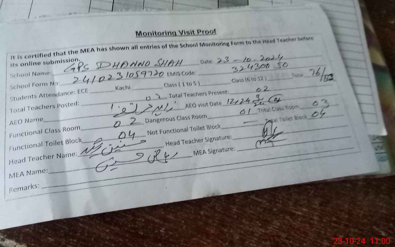 | EMIS Code: 32430050 | Name of School: GPS DHANNO SHAH | |||