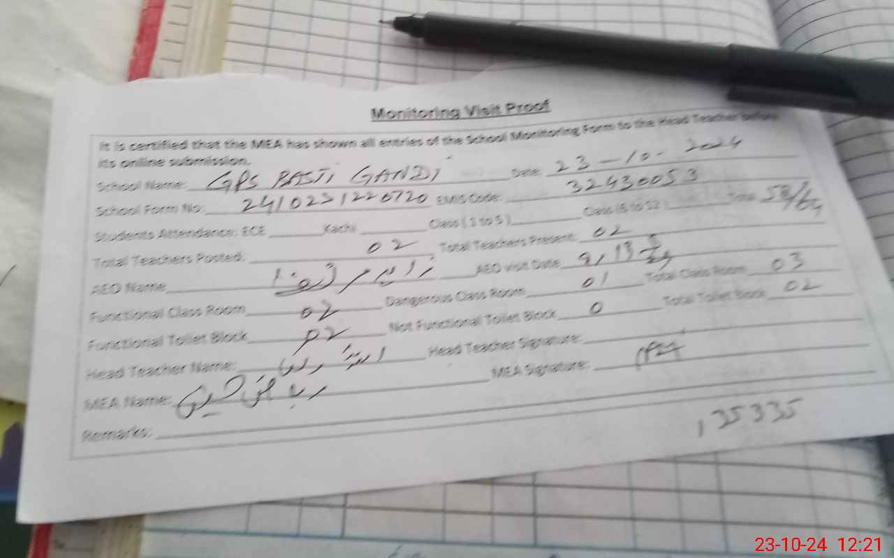 | EMIS Code: 32430053 | Name of School: GPS BASTI GANDI | |||