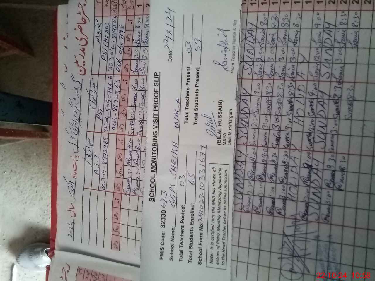 | Name: Su**** Ka**** Designation: (School Headmaster's/Headmistress's) PST Phone/Cell Number: 03**** |