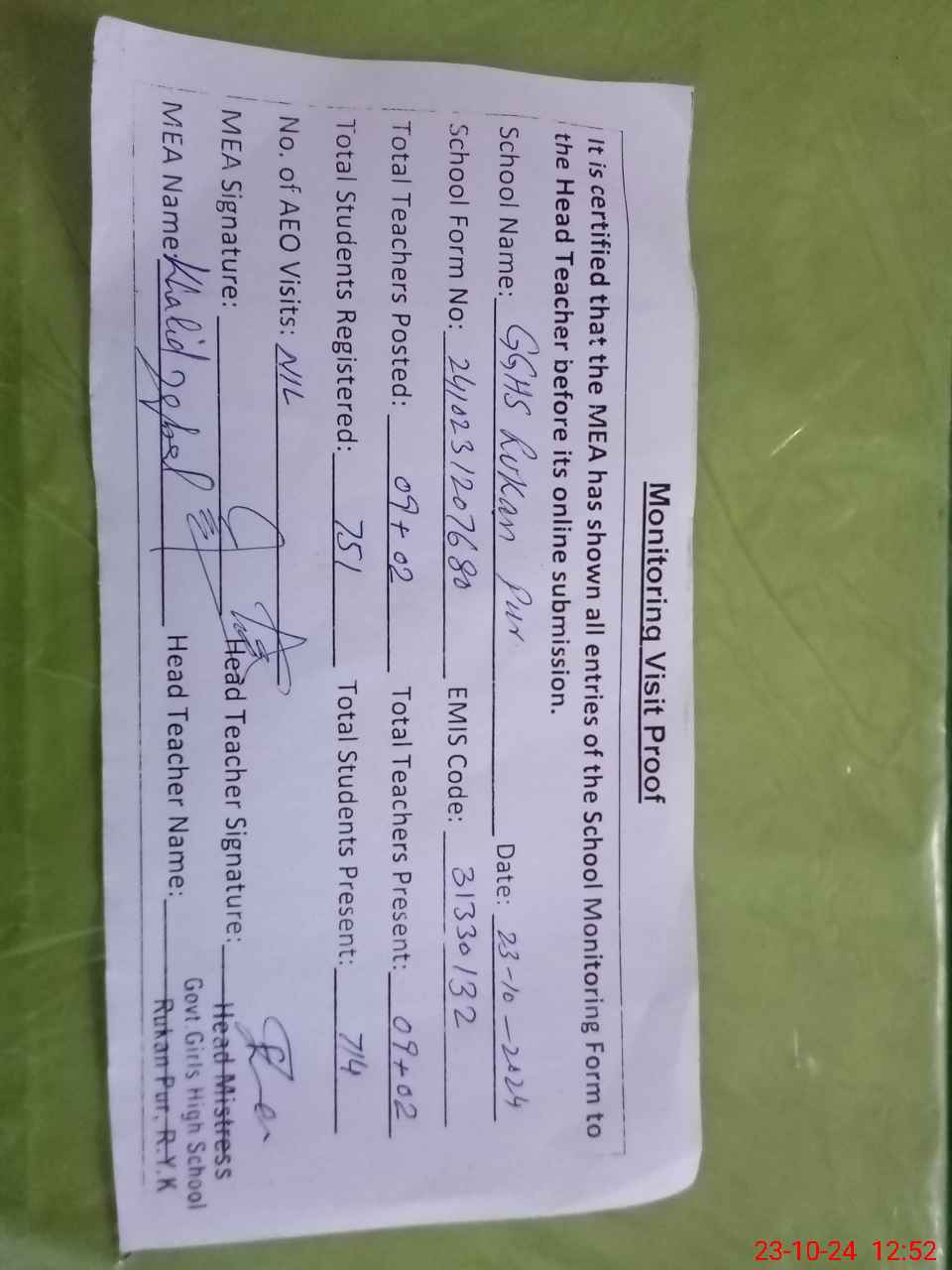 | EMIS Code: 31330132 | Name of School: GGHS RUKAN PUR | |||