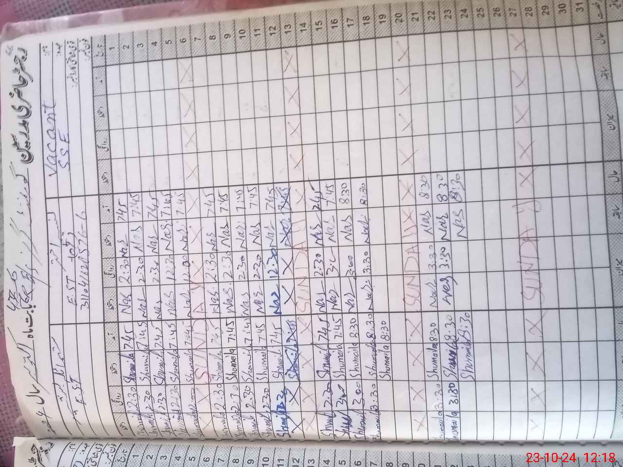 | CNIC | Full Name | Designation | R/C | Absence During Last Calender Month |