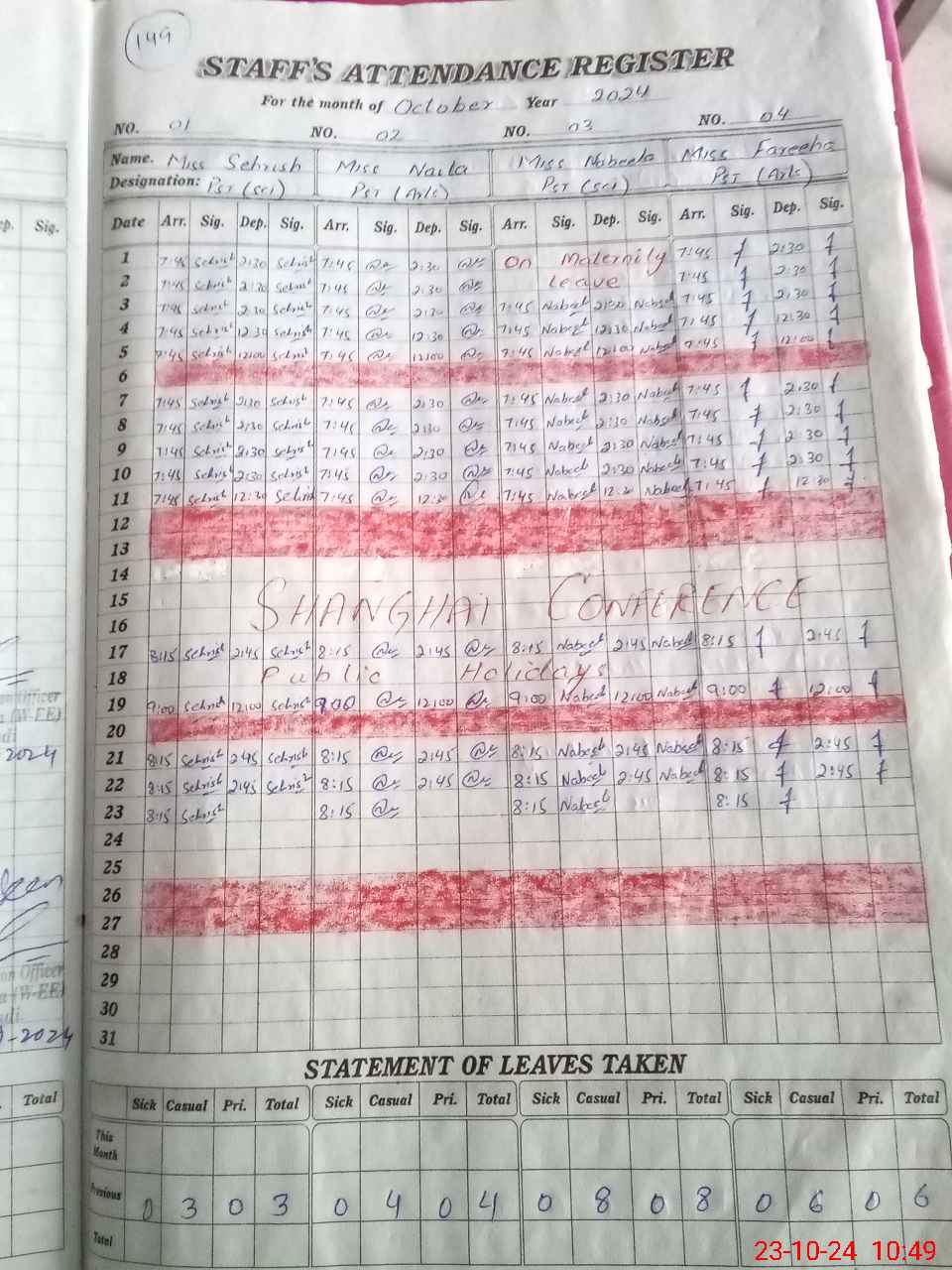 | Leave | Duty | Absent | Maternity | Medical | Ex- Pak |