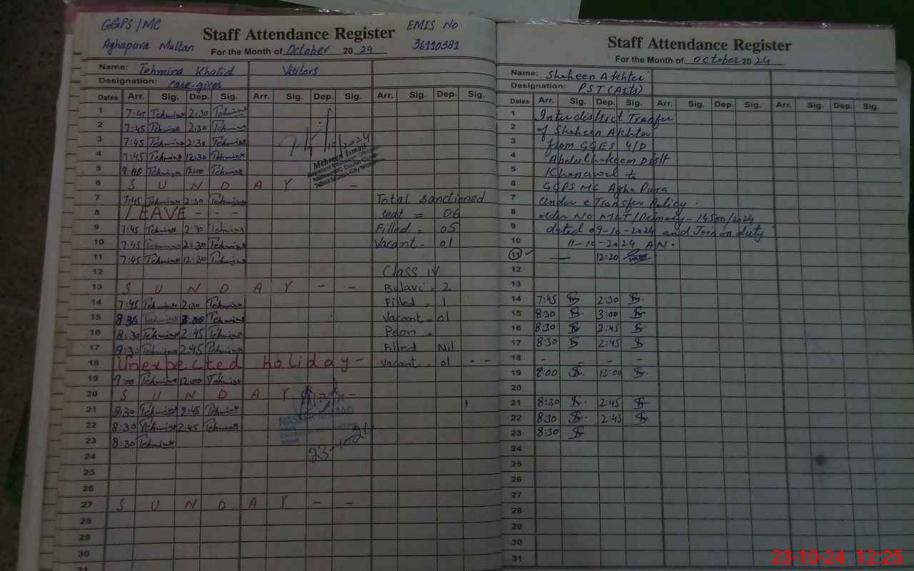 | EMIS Code: 36110381 | Name of School: GGPS MC AGHA PURA | |||