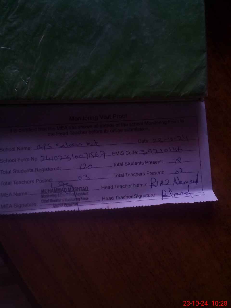 | EMIS Code: 39210146 | Name of School: GPS SALEEM KOT PAKPATTAN | |||