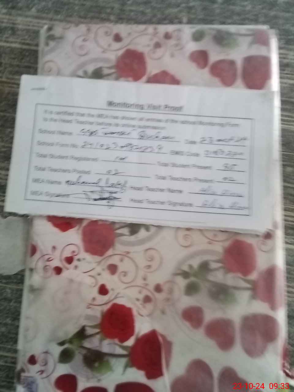 | Attendance Register | Head Teacher | MEA with School | Visit Proof |
