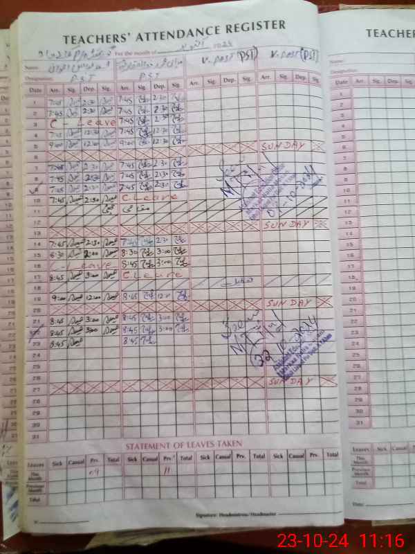| Name: M.AB**** Designation: (School Headmaster's/Headmistress's) PST Phone/Cell Number: 03**** |