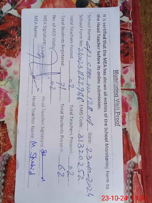 | EMIS Code: 31320252 | Name of School: GPS CHAK NO 128/NP | |||