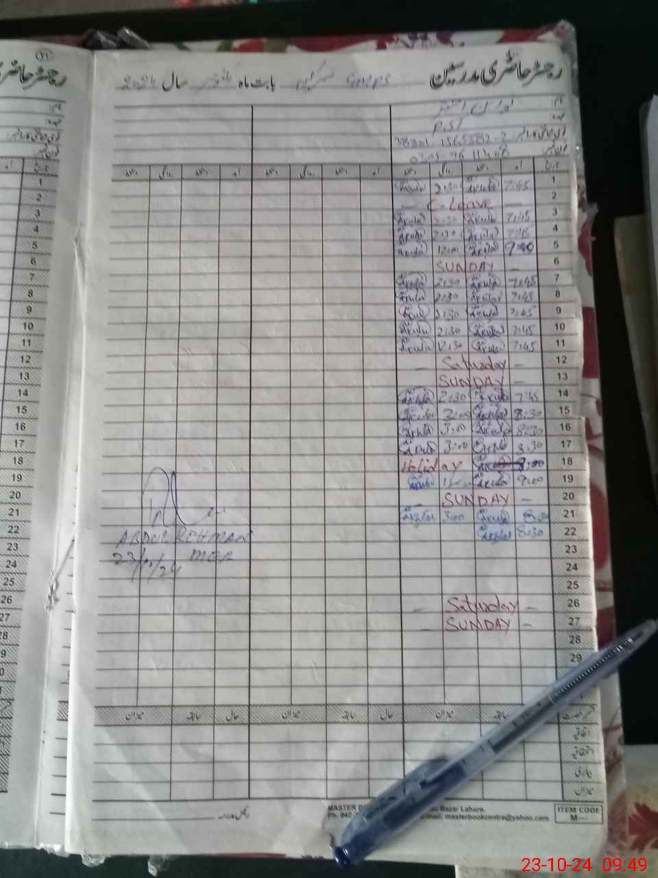 | CNIC | Full Name | Designation | R/C | Absence During Last Calender Month |