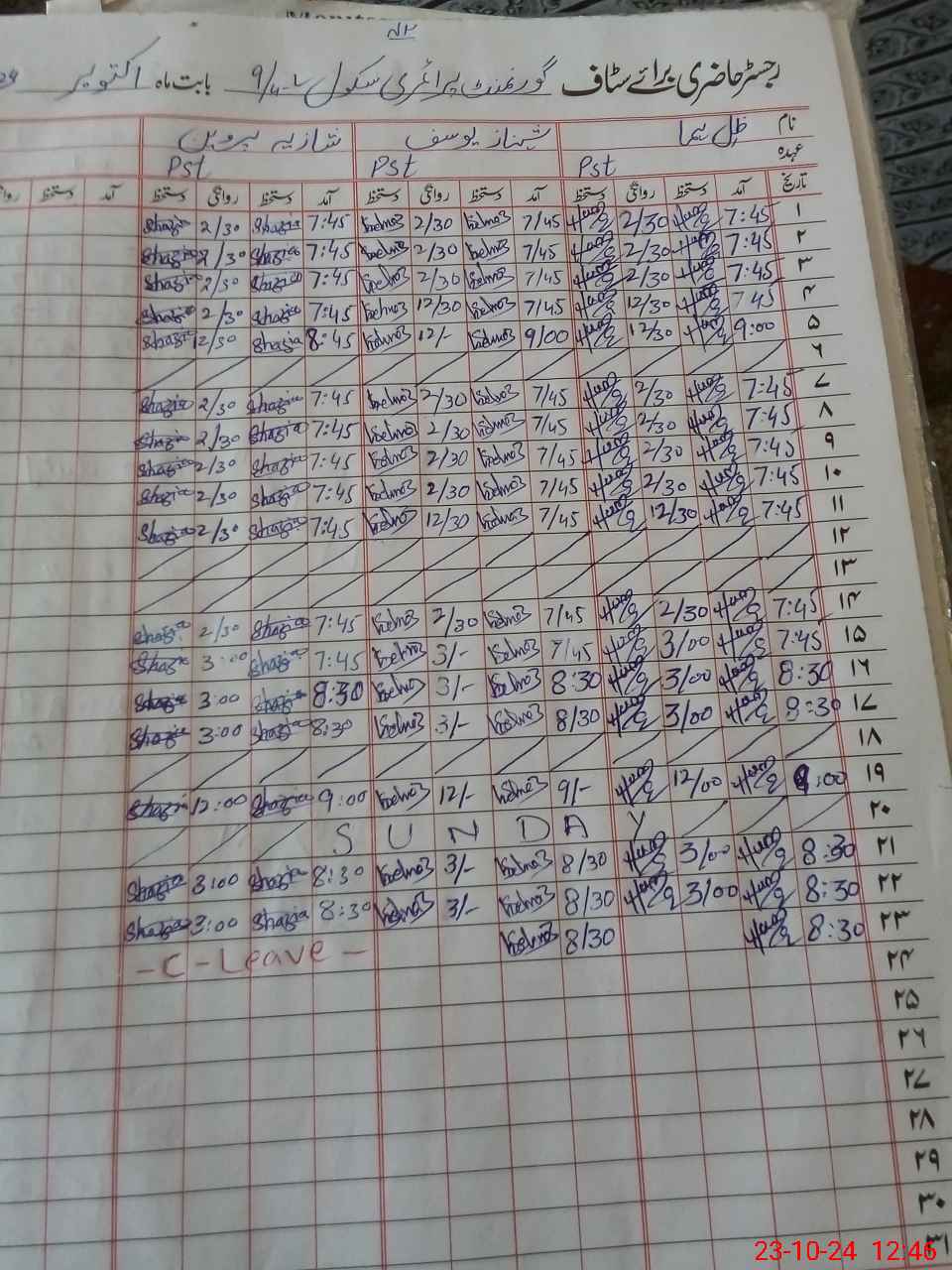 | 36**** | Sh**** Pa**** | PST | Regular | 2 | 0 | 0 | 0 | 0 | 0 | 0 | 0 | 2 | Casual |