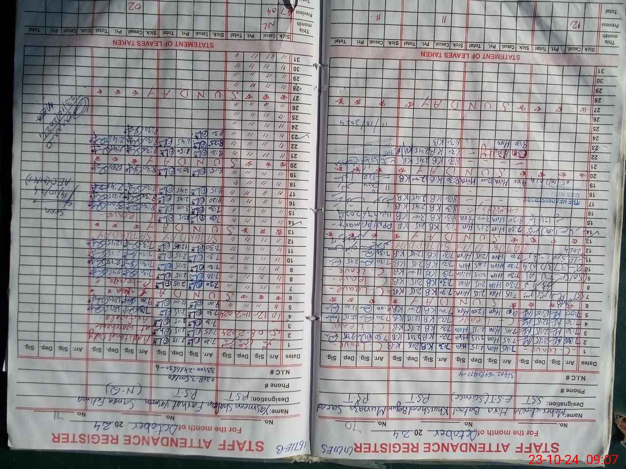 | CNIC | Full Name | Designation | R/C | Absence during last cal. month |