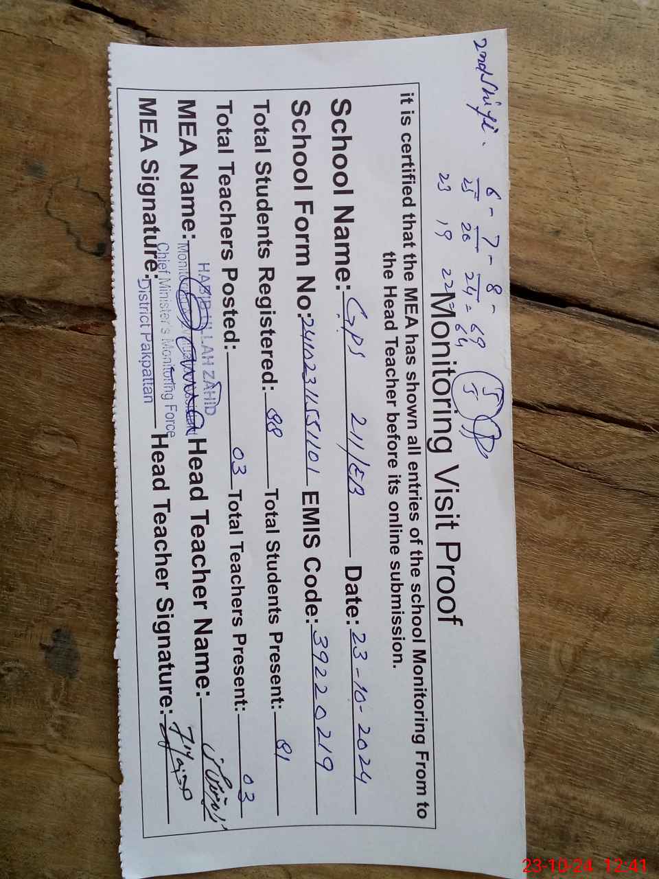 | EMIS Code: 39220219 | Name of School: GPS 211 EB | |||