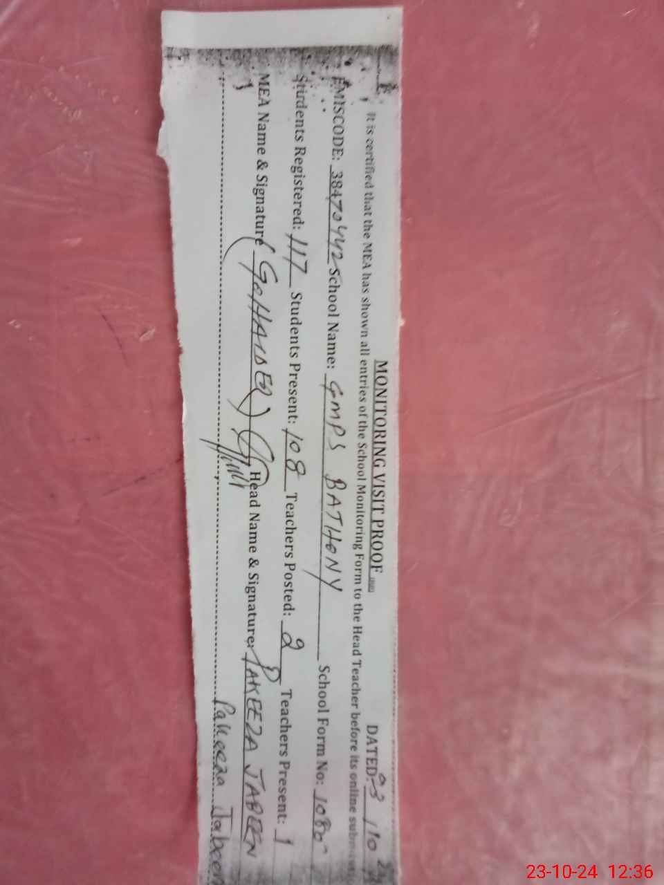 | EMIS Code: 38470442 | Name of School: GMPS BATHUNI | |||
