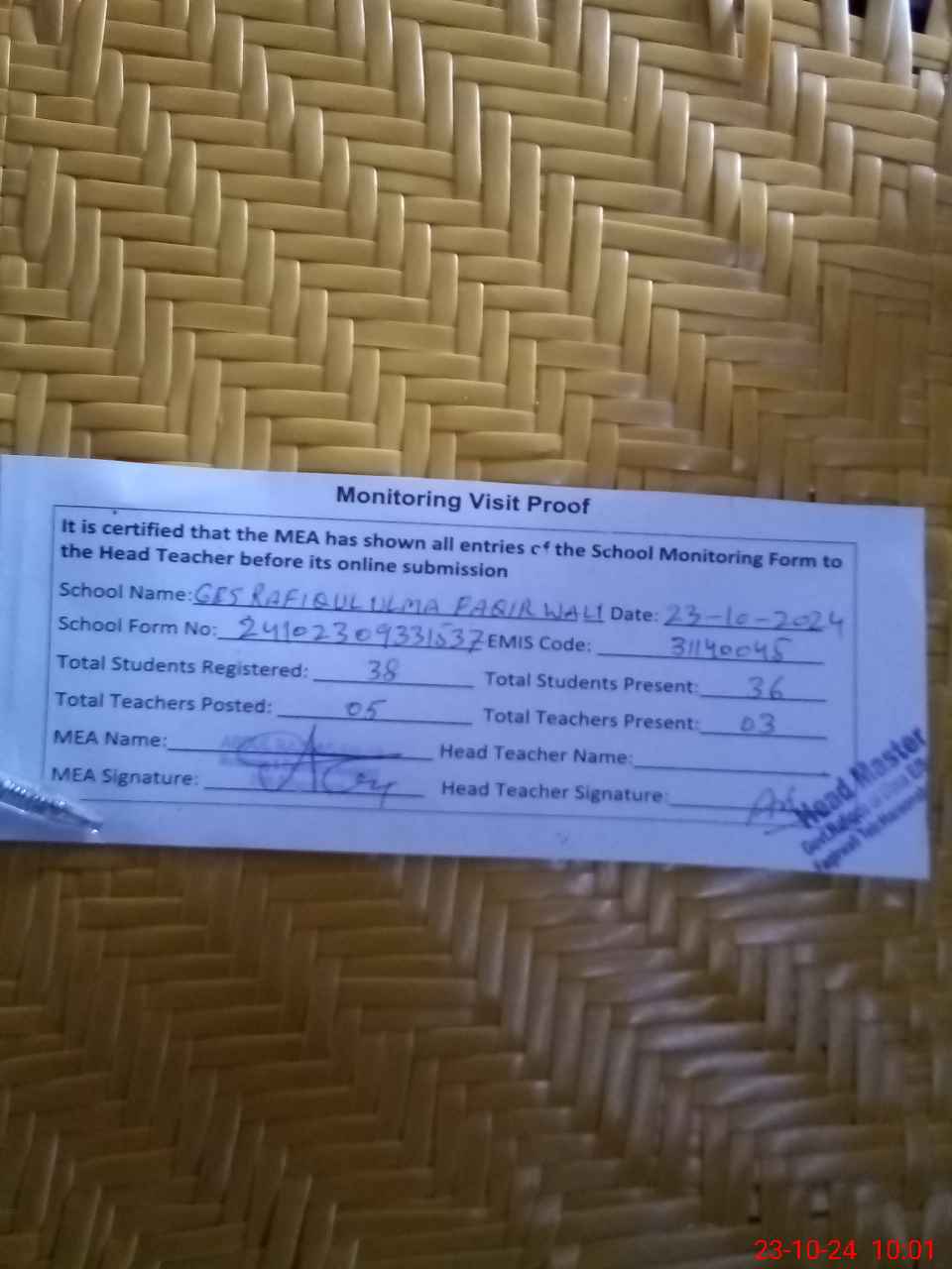 | EMIS Code: 31140045 | Name of School: GES RAFIQ-UL-HULMA FAQIR WALI | |||