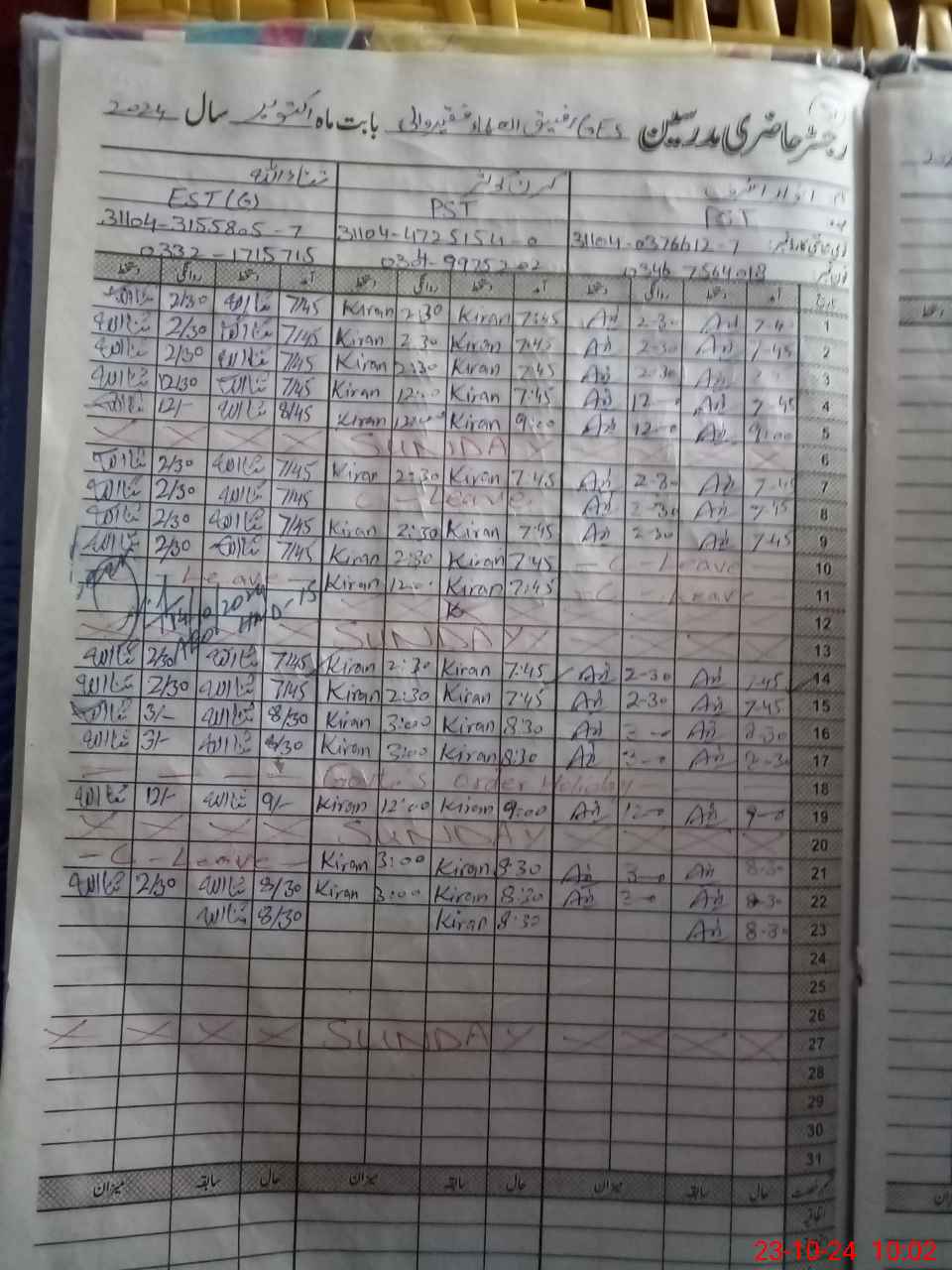 | 31**** | Sh**** Sa**** | EST | Regular | 0 | 0 | 0 | 0 | 0 | 0 | 0 | 0 | 0 | Absent (Un-Authorized) |
