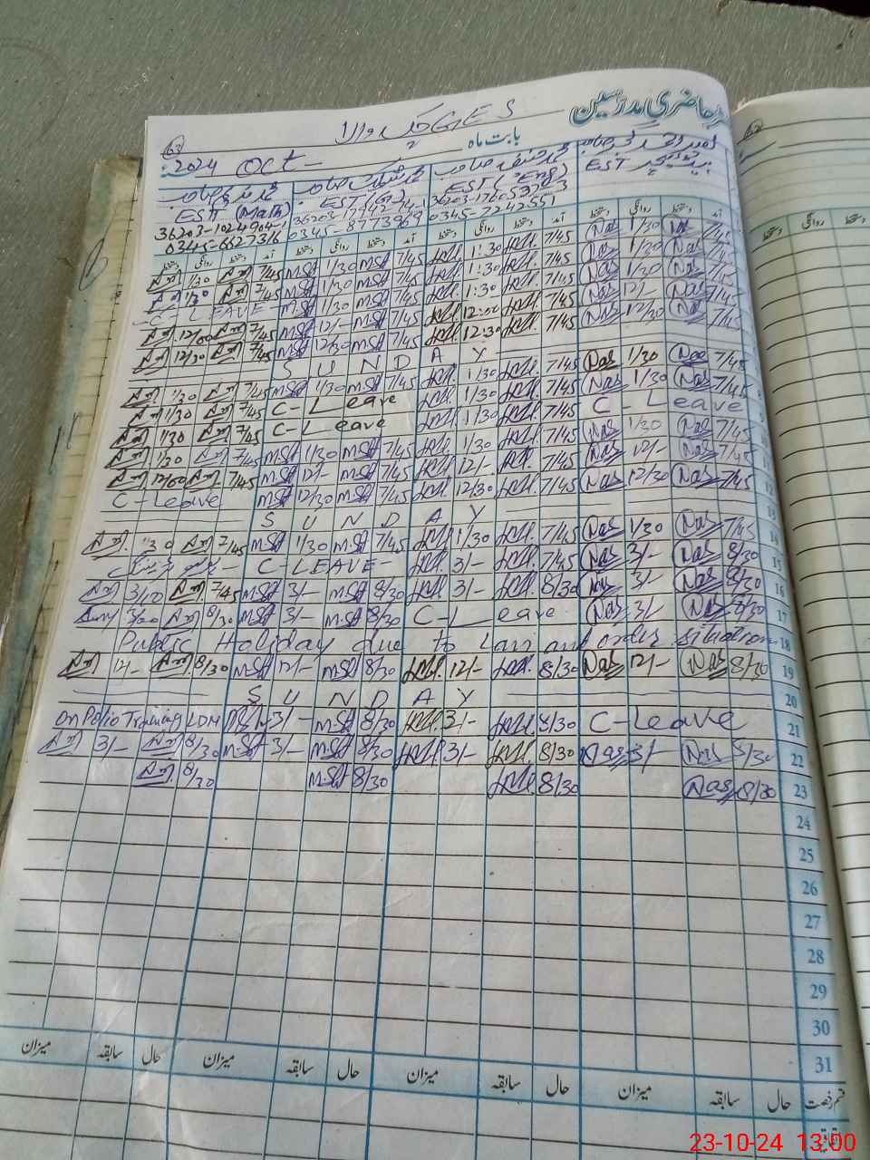 | Leave | Duty | Absent | Maternity | Medical | Ex- Pak |