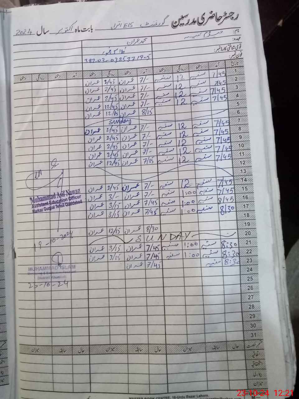 | CNIC | Full Name | Designation | R/C | Absence During Last Calender Month |