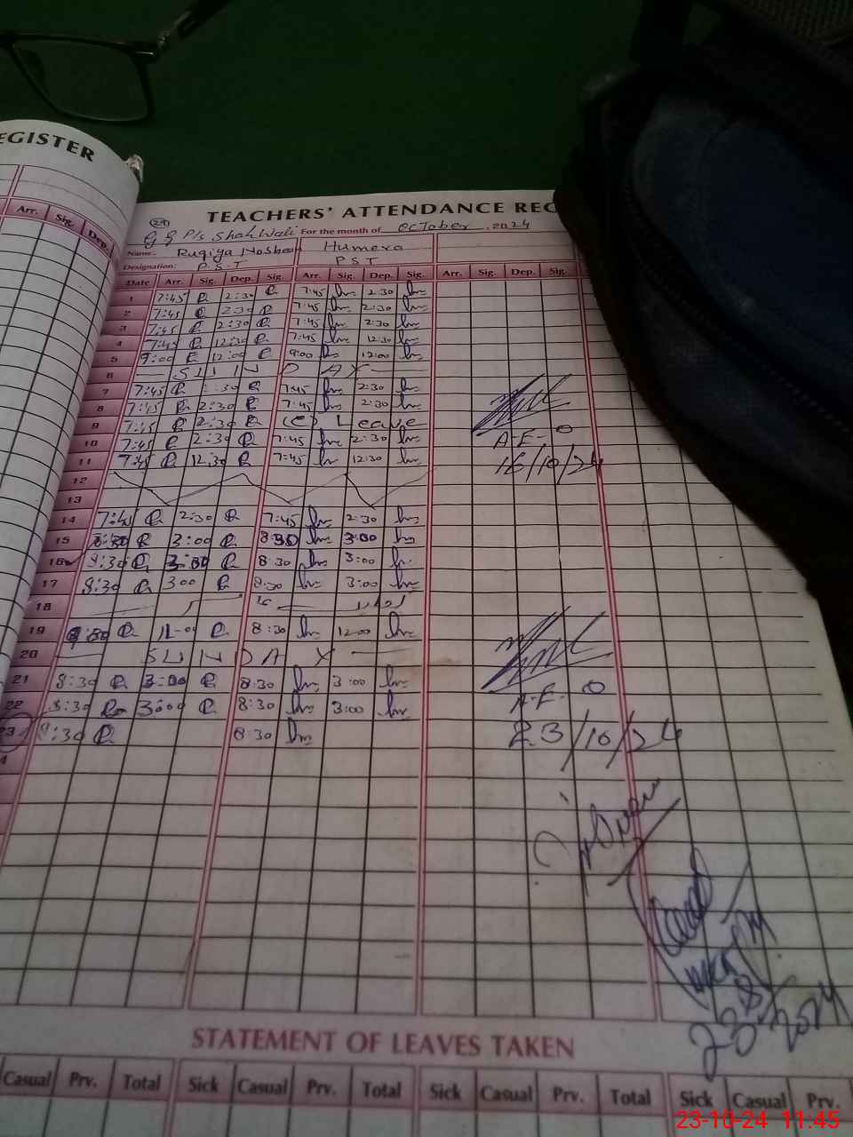 | Leave | Duty | Absent | Maternity | Medical | Ex- Pak |