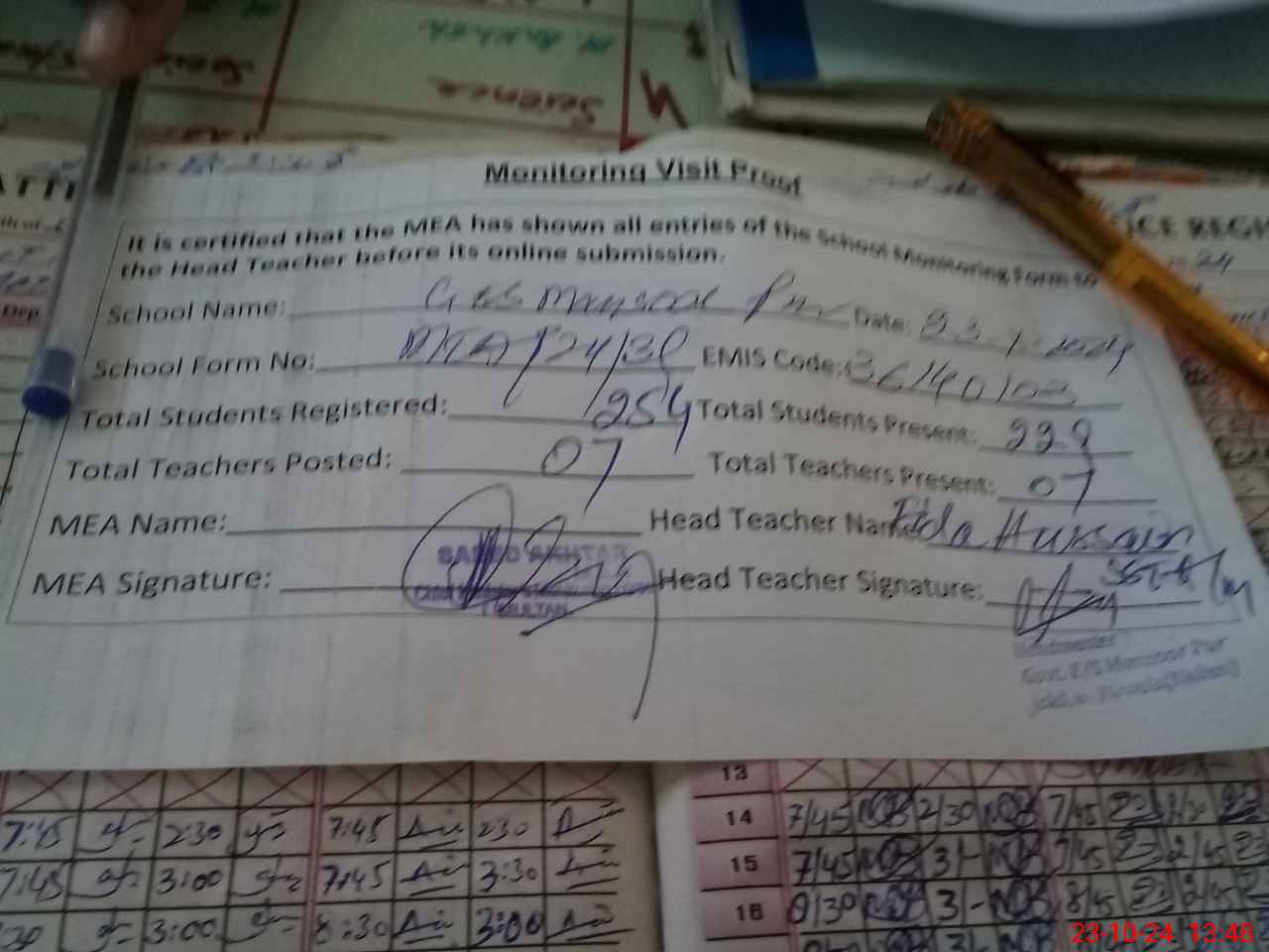 | Certified that this School was Inspected by the Undersigned MEA/DMO Today and the Information Stated Above is as Per Record. | |||||