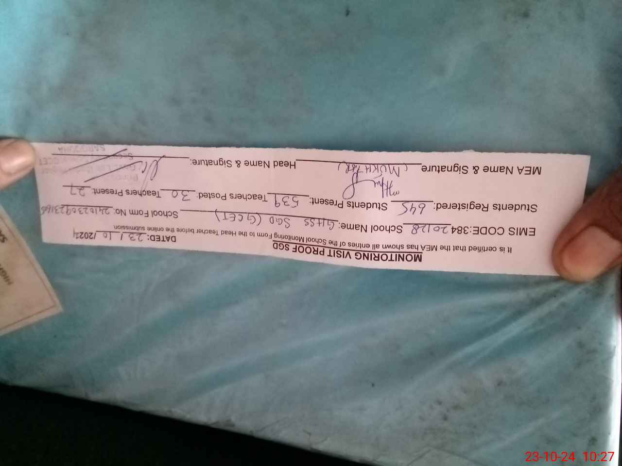 | Attendance Register | Head Teacher | MEA with School | Visit Proof |