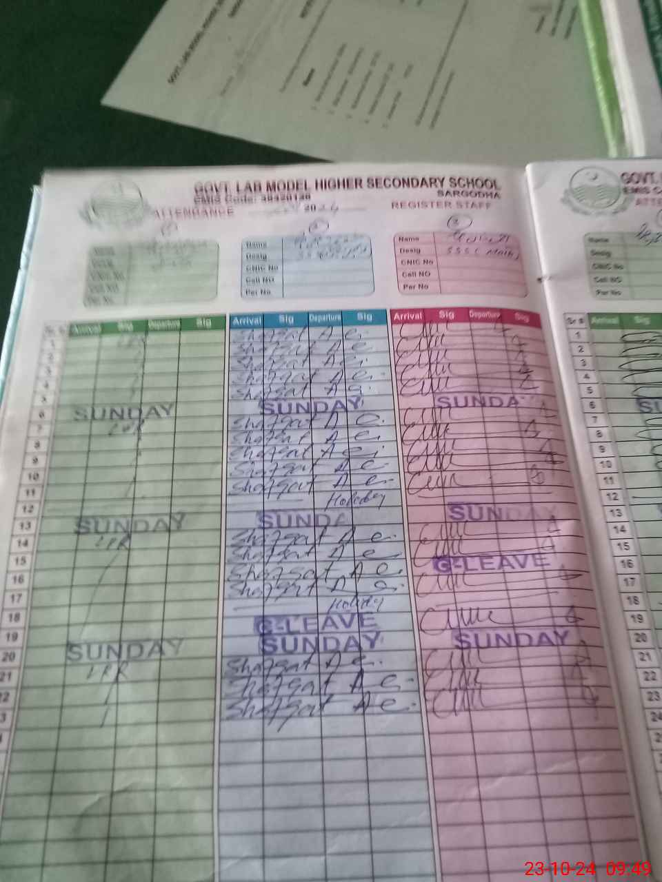 | CNIC | Full Name | Designation | R/C | Absence During Last Calender Month |