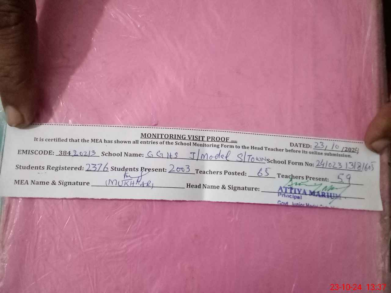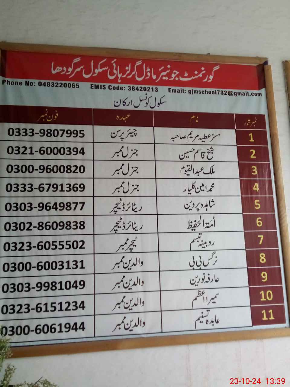 | EMIS Code: 38420213 | Name of School: GGHS JUNIOR MODEL SATTELITE TOWN SARGODHA | |||