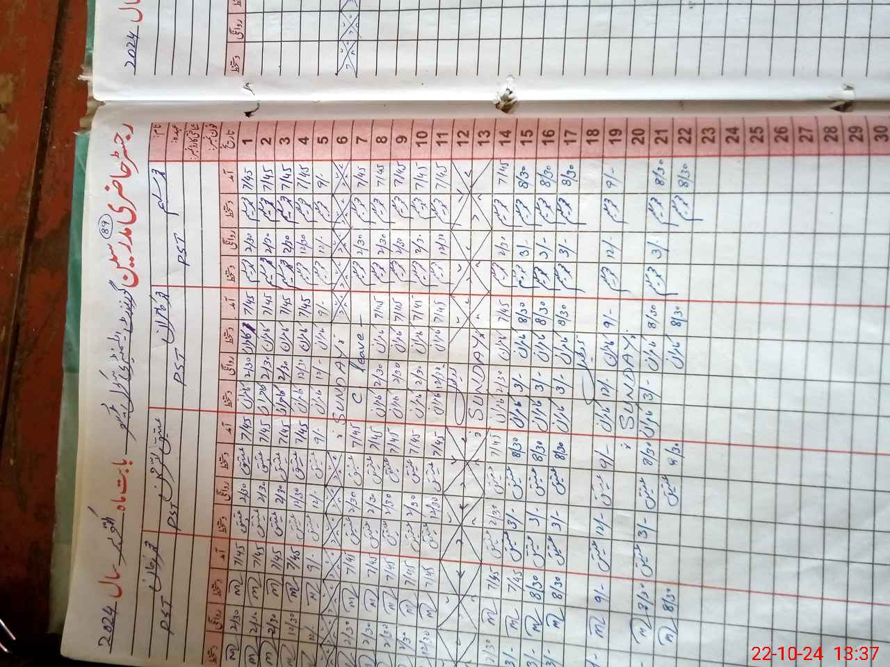 | CNIC | Full Name | Designation | R/C | Absence During Last Calender Month |