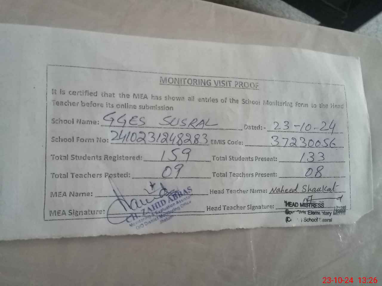 | EMIS Code: 37230056 | Name of School: GGES SUSRAL | |||