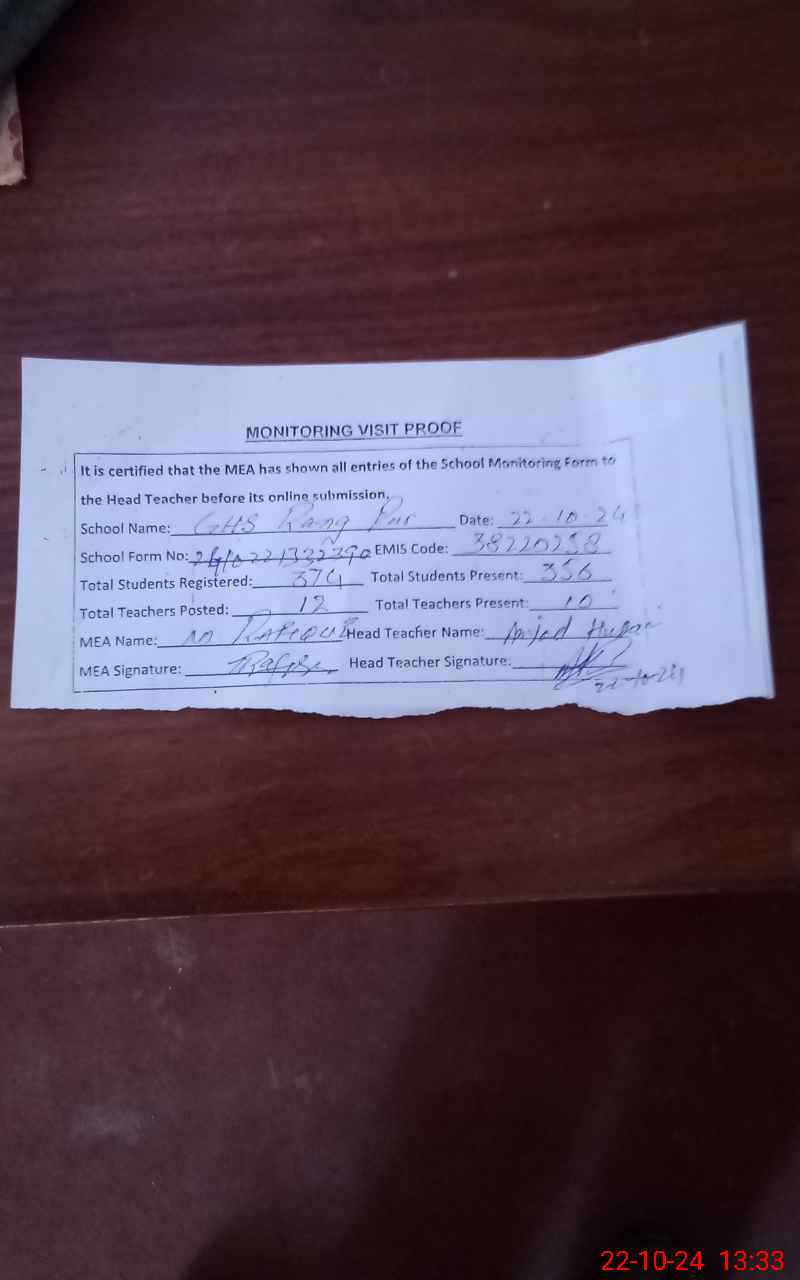 | EMIS Code: 38220258 | Name of School: GHS RANGPUR BAGHOOR | |||