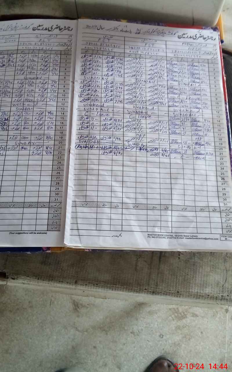 | CNIC | Full Name | Designation | R/C | Absence During Last Calender Month |