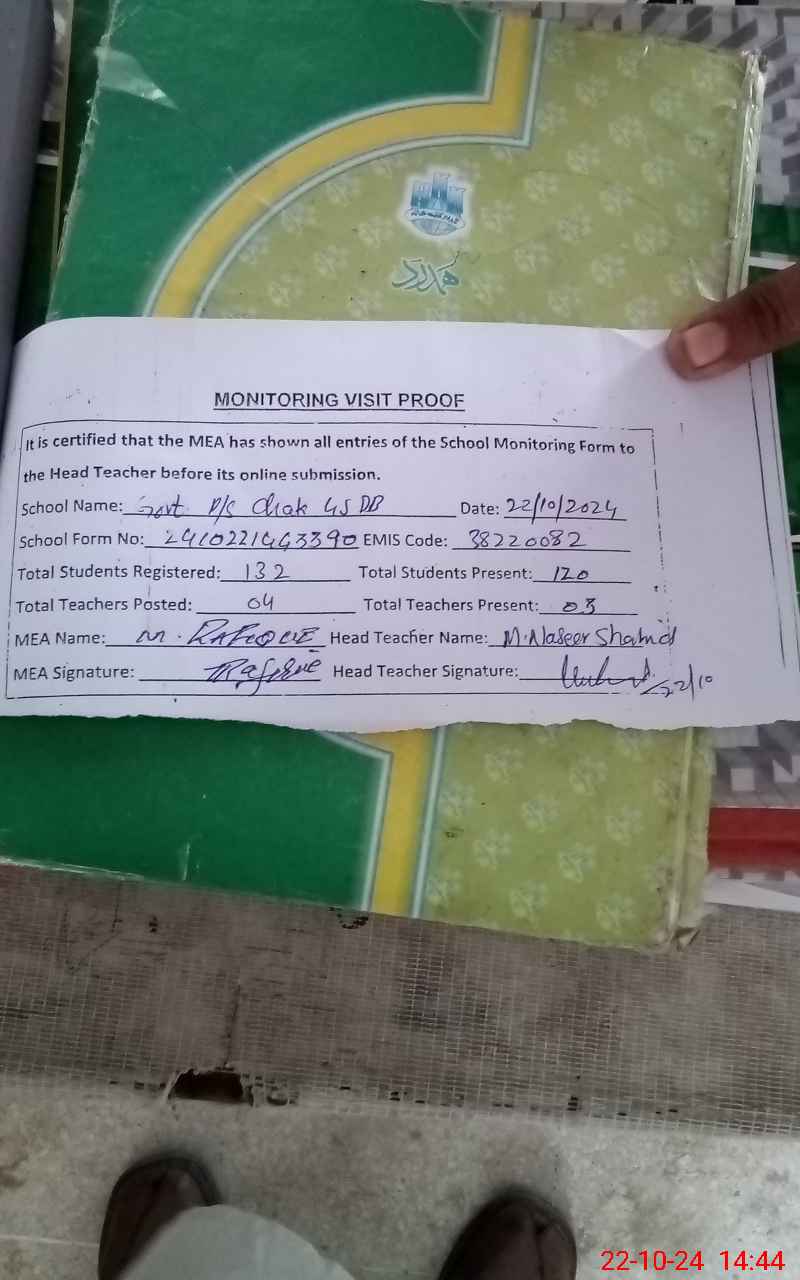 | EMIS Code: 38220082 | Name of School: GPS CHAK NO. 45/DB | |||