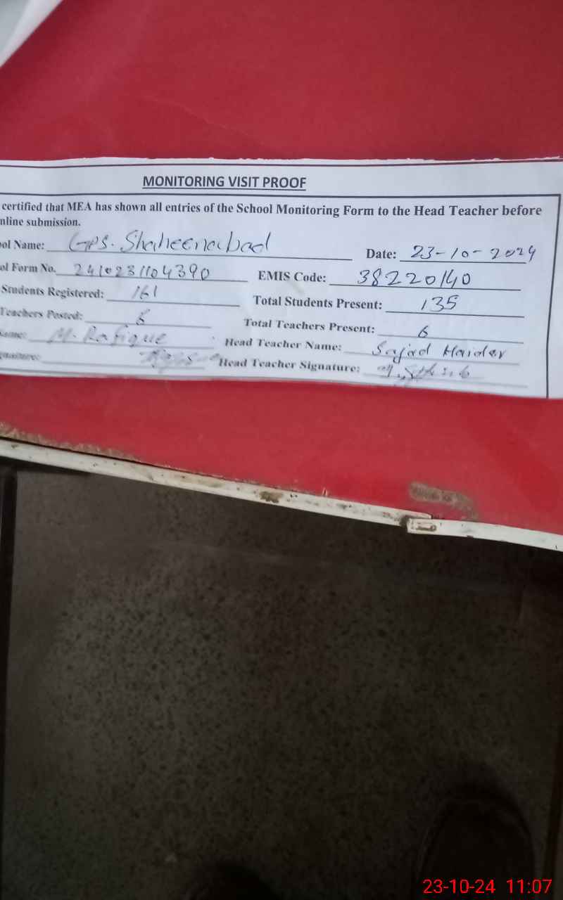 | EMIS Code: 38220140 | Name of School: GPS SHAHEEN ABAD | |||