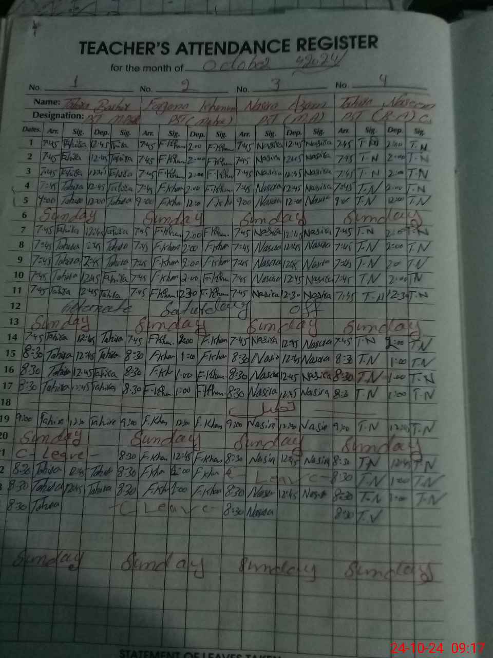 | 35**** | Fa**** Kh**** | PST | Regular | 1 | 0 | 0 | 0 | 0 | 0 | 0 | 0 | 1 | Casual |