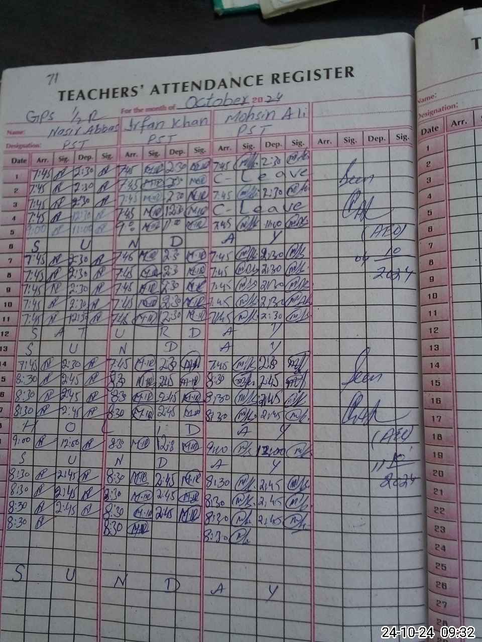 | CNIC | Full Name | Designation | R/C | Absence during last cal. month |