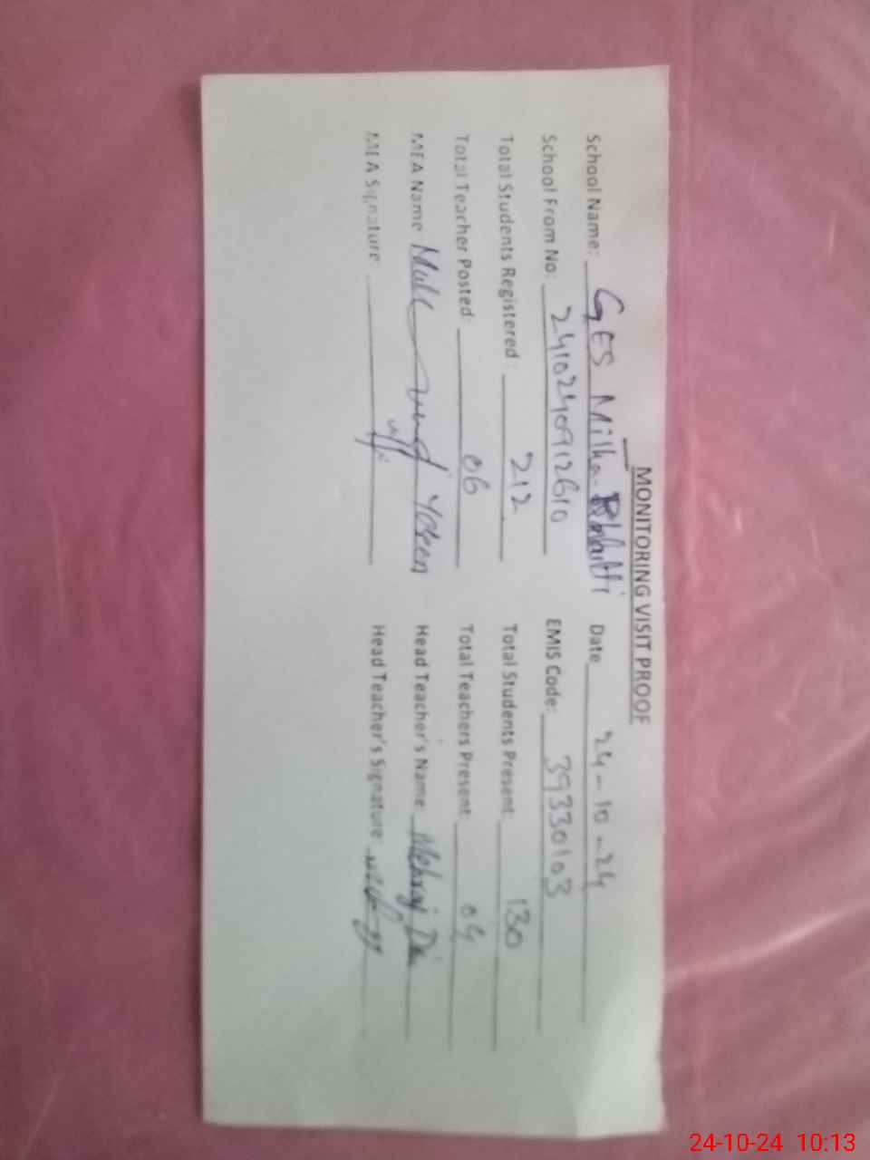 | EMIS Code: 39330103 | Name of School: GES MITHA BHATTI | |||