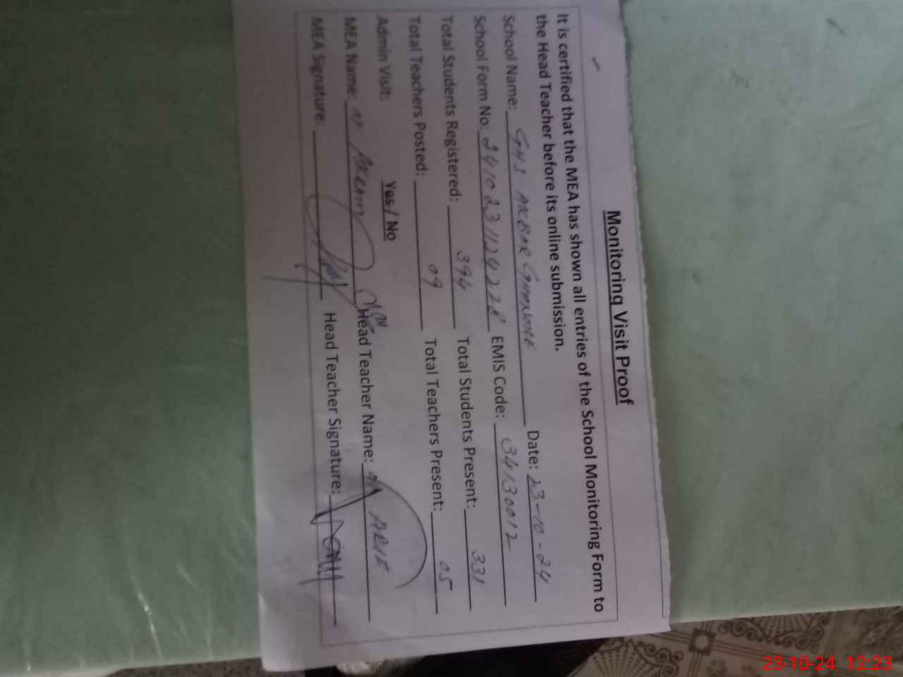 | EMIS Code: 34130012 | Name of School: GHS AKBAR GHANOKE | |||