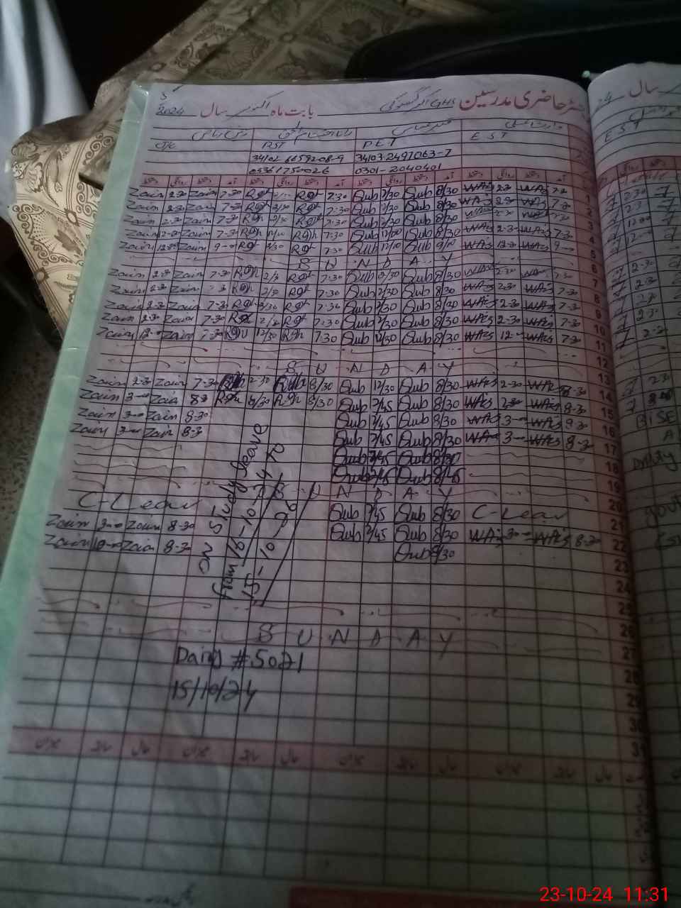 | 34**** | Ra**** Ih**** UlHa**** | PST | Regular | 0 | 0 | 0 | 0 | 0 | 0 | 0 | 0 | 0 | Absent (Un-Authorized) |