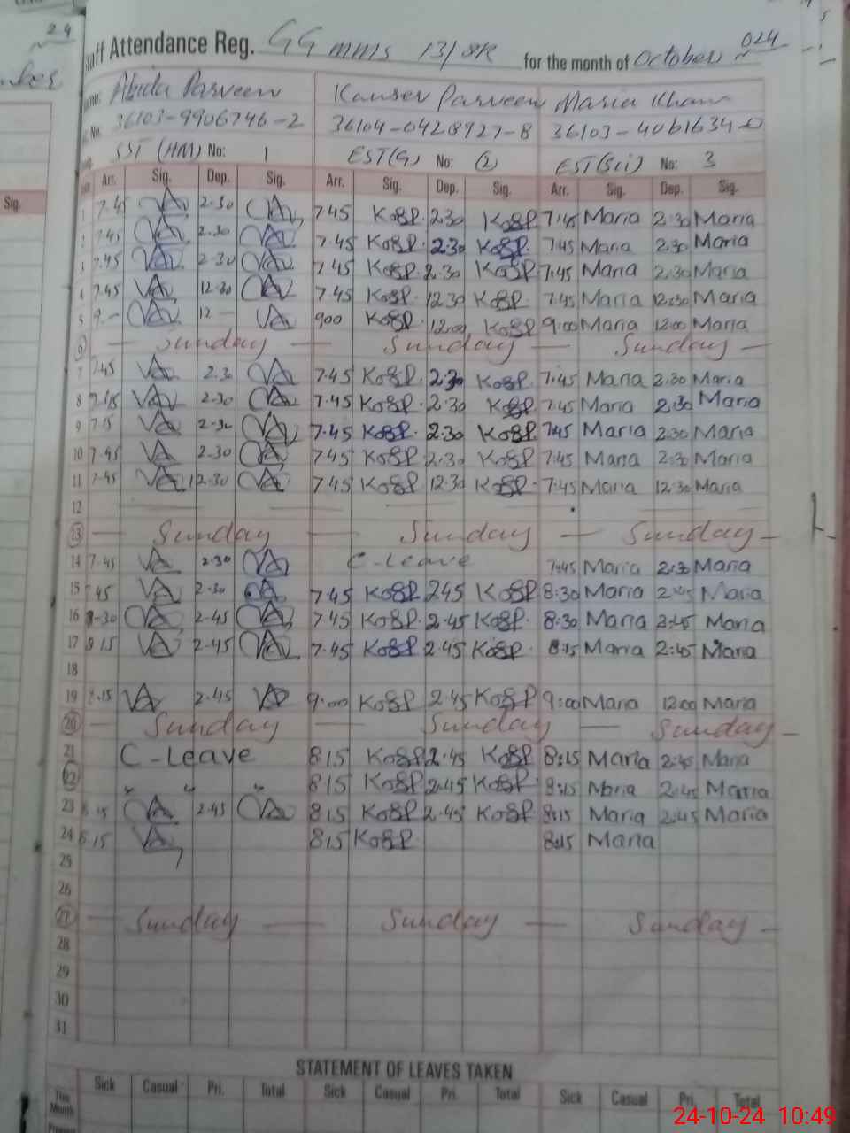 | Leave | Duty | Absent | Maternity | Medical | Ex- Pak |