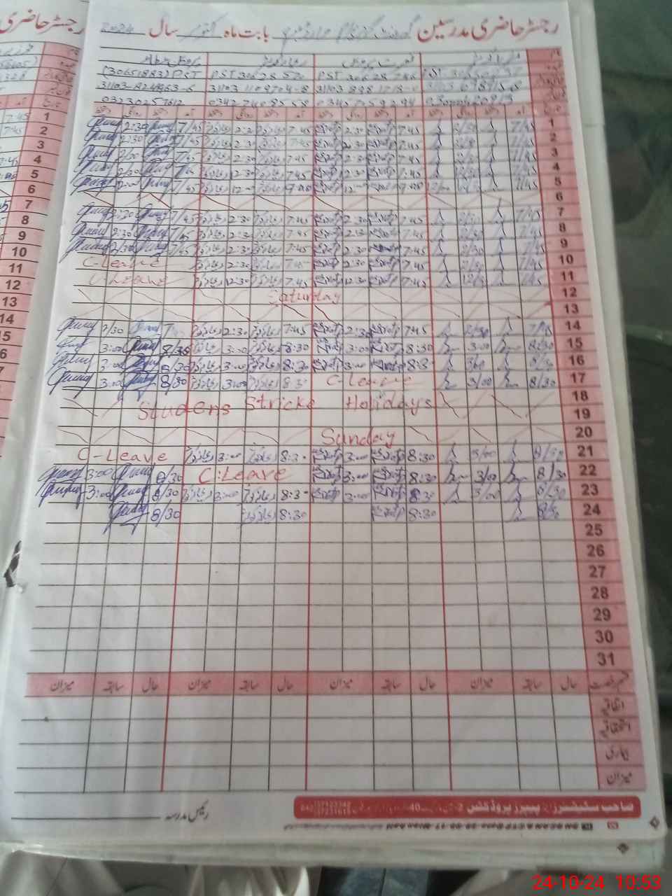 | CNIC | Full Name | Designation | R/C | Absence During Last Calender Month |