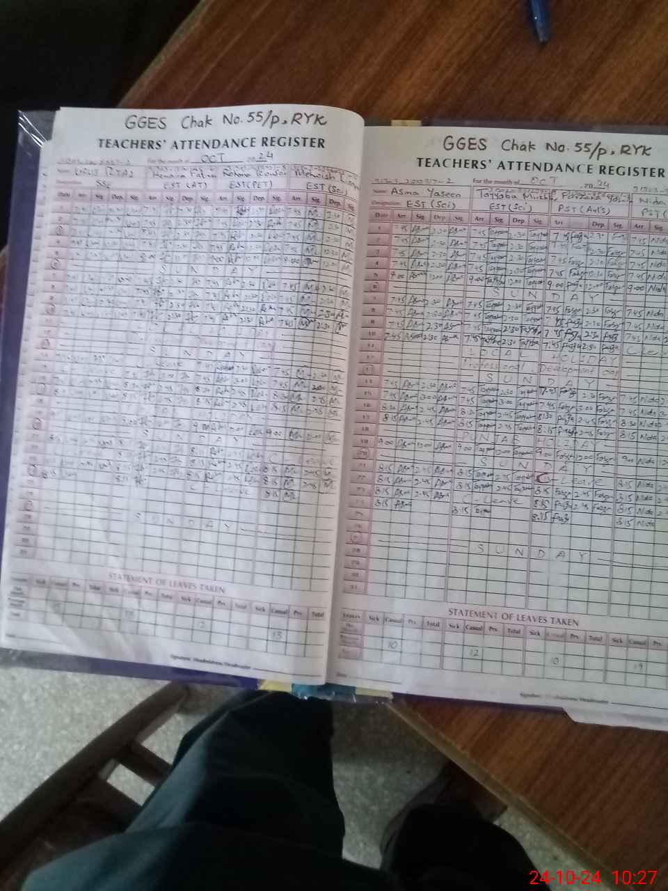 | Leave | Duty | Absent | Maternity | Medical | Ex- Pak |