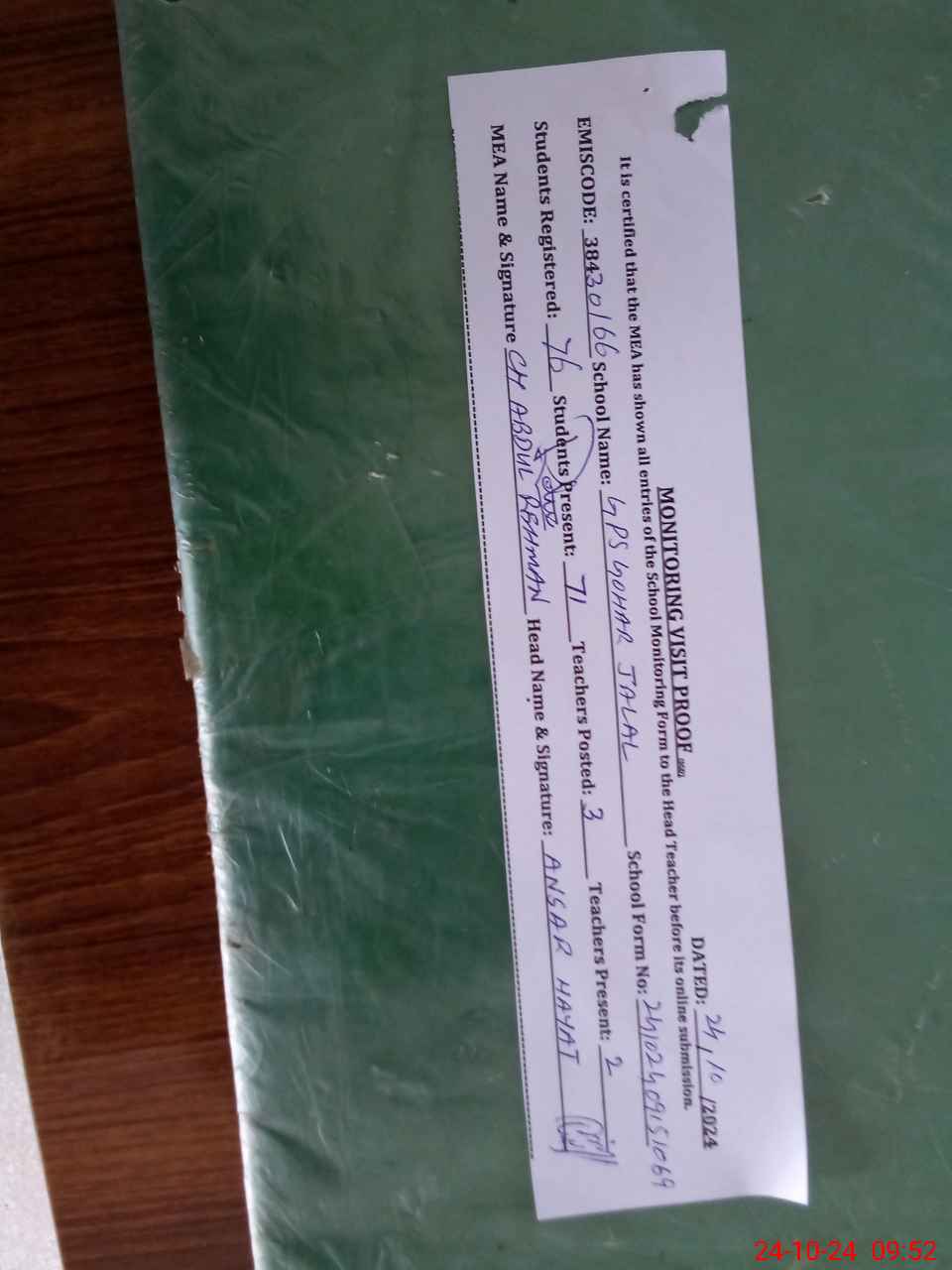 | EMIS Code: 38430166 | Name of School: GPS GOHAR JALAL | |||