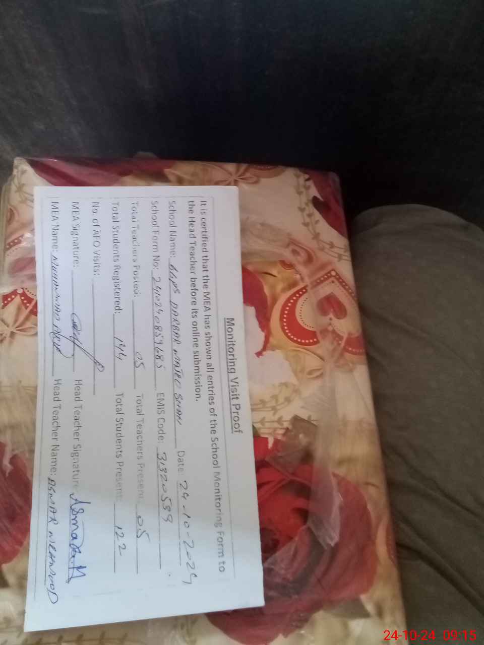 | Certified that this School was Inspected by the Undersigned MEA/DMO Today and the Information Stated Above is as Per Record. | |||||