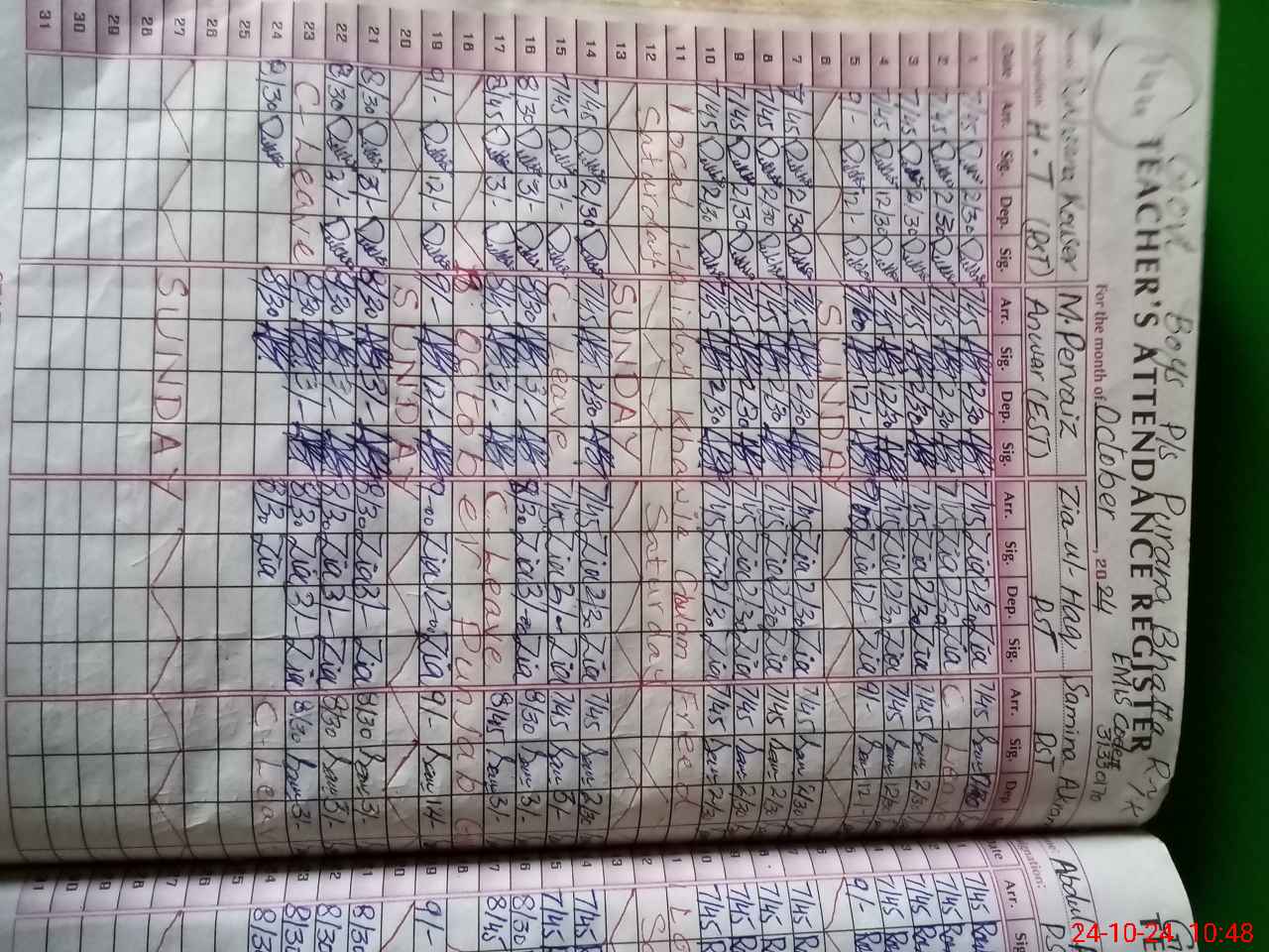 | Leave | Duty | Absent | Maternity | Medical | Ex- Pak |