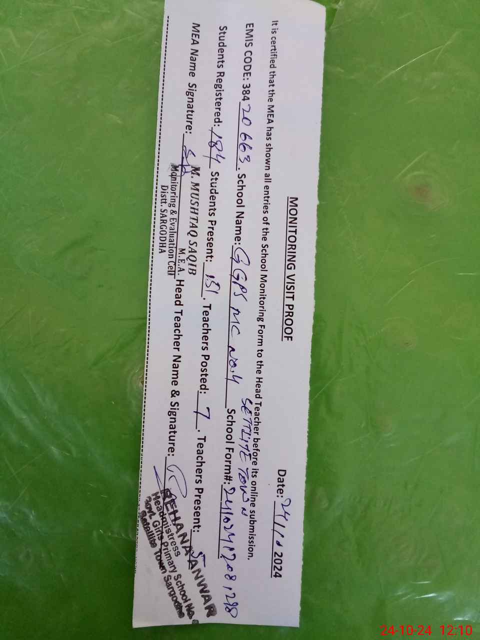 | EMIS Code: 38420663 | Name of School: GGPS MC NO.4 SATTELITE TOWN SARGODHA | |||