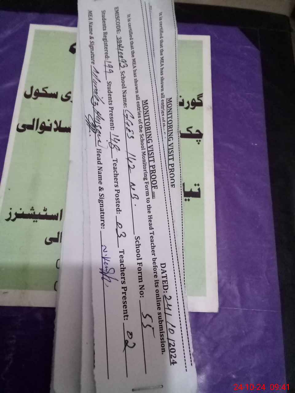 | Certified that this School was Inspected by the Undersigned MEA/DMO Today and the Information Stated Above is as Per Record. | |||||