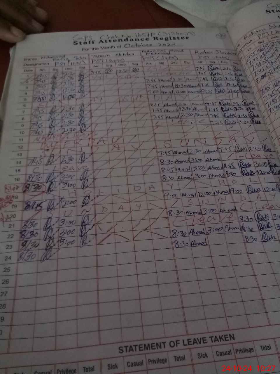 | 31**** | Ya**** Ak**** | PST | Regular | 4 | 0 | 0 | 0 | 0 | 0 | 0 | 0 | 4 | Maternity |