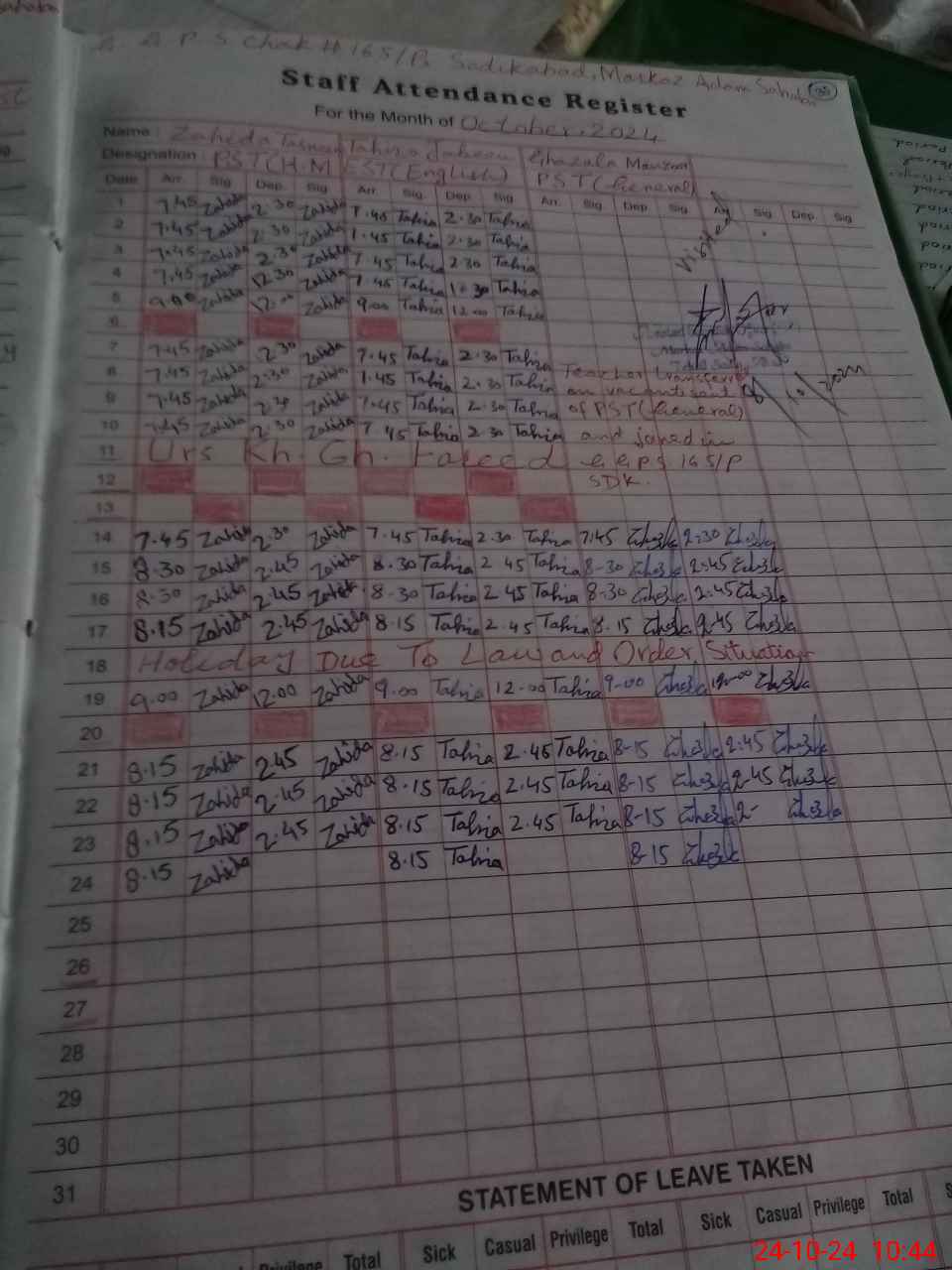 | 31**** | An**** Ki**** | 1 | 0 | 0 | 30 | 0 | 0 | 0 | 0 | 0 | 0 | Absent (Un-Authorized) | |