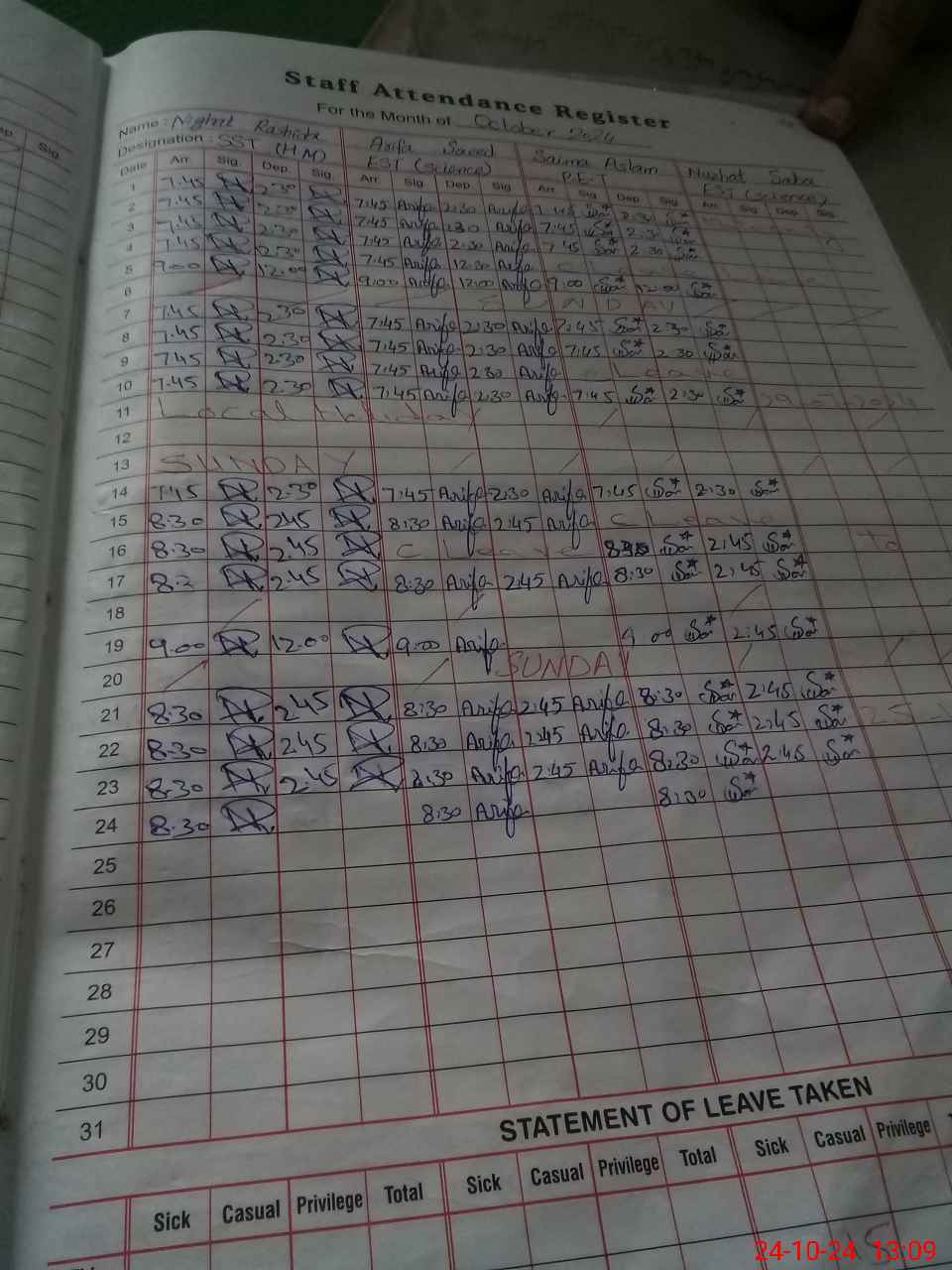 | 31**** | Za**** Pa**** | PST | Regular | 2 | 11 | 0 | 0 | 0 | 0 | 0 | 0 | 2 | Casual |