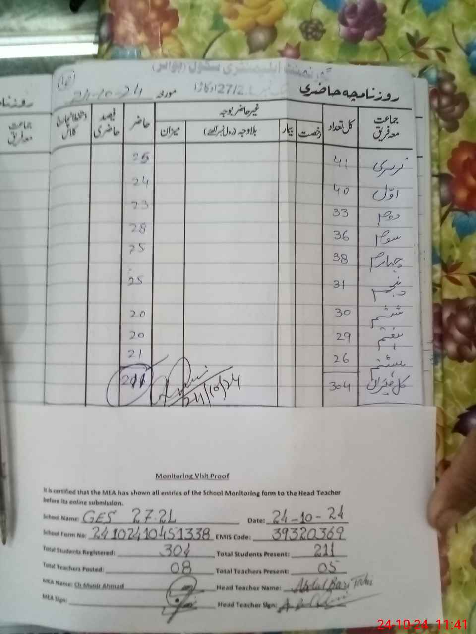 | EMIS Code: 39320369 | Name of School: GES CHAK NO 27/2-L | |||
