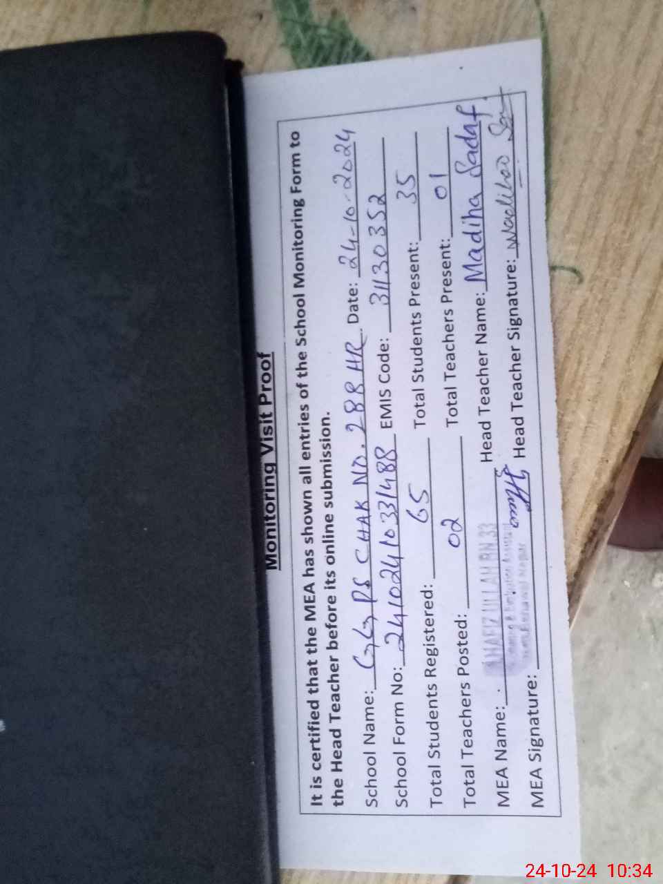 | EMIS Code: 31130352 | Name of School: GGPS CHAK NO 288 HR | |||