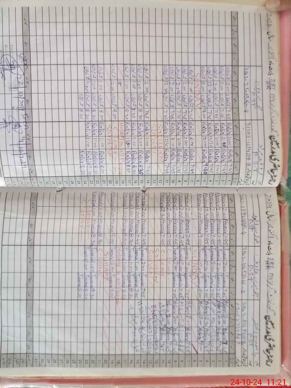| CNIC | Full Name | Designation | R/C | Absence During Last Calender Month |